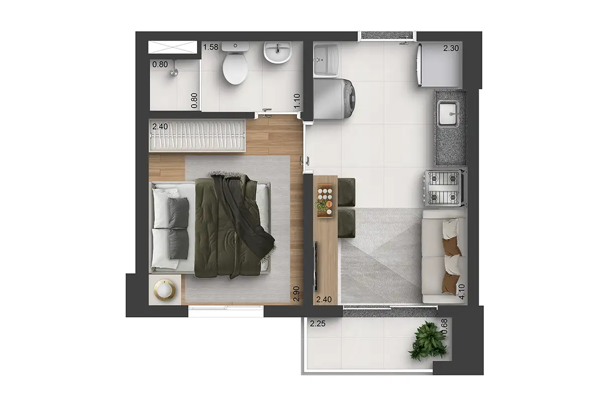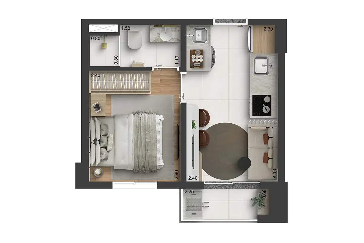 ☑ 1 dorm., com varanda | 25m²