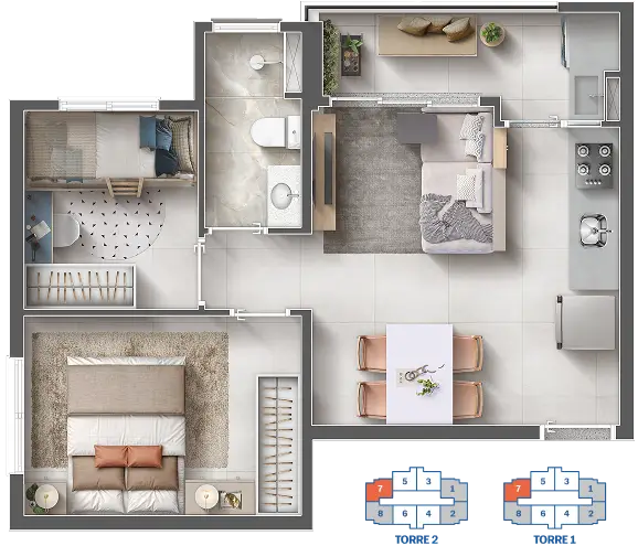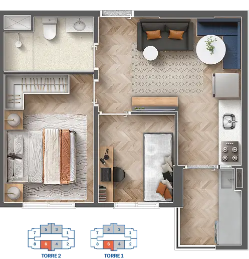 ☑ 40,42m² | 1 vaga (carro)